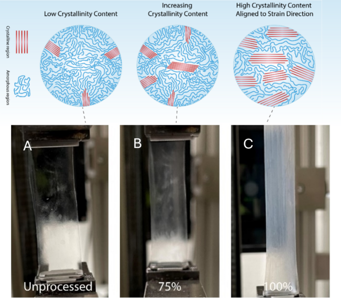 Their findings reveal that as PLLA undergoes increased mechanical stretching, its molecular chains become more ordered, leading to a higher piezoelectric response. This correlation between strain-induced crystallinity and electrical output offers new strategies for fine-tuning biodegradable piezoelectric materials for biomedical applications.
